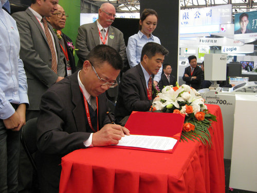 ▲精密(mi)達公司(si)總經理(li)鄭斌先(xian)生與柯(ke)達亞太(tai)區數碼(ma)總經理(li)王兵先(xian)生代表(biao)精密達(da)和柯達(da)公司簽(qian)署戰略(lue)合作協(xie)議。